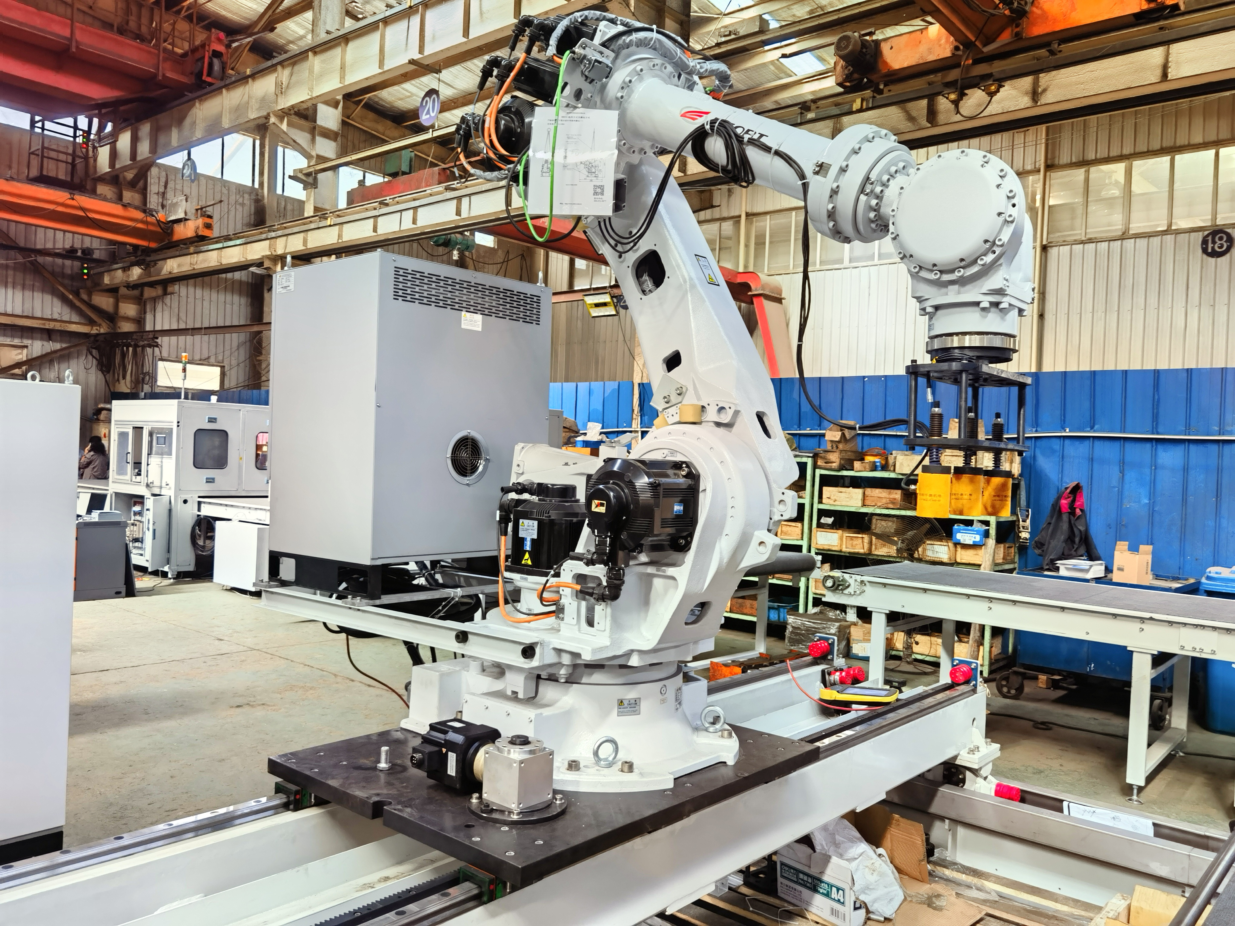 機(jī)器人+輸送帶+打標(biāo)機(jī)+視覺(jué)定位項(xiàng)目